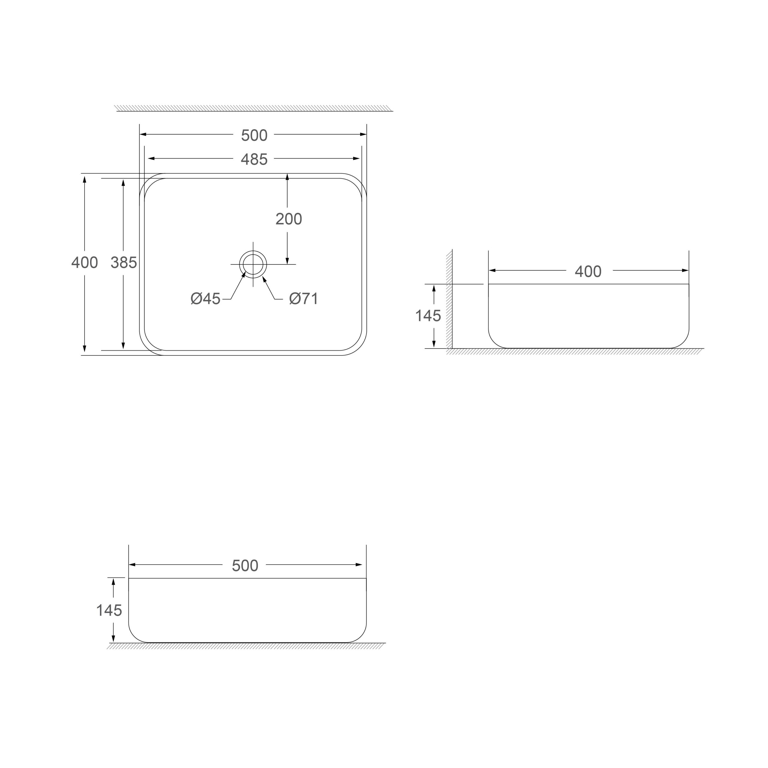 Dimension: L500 x W400 x H145mm